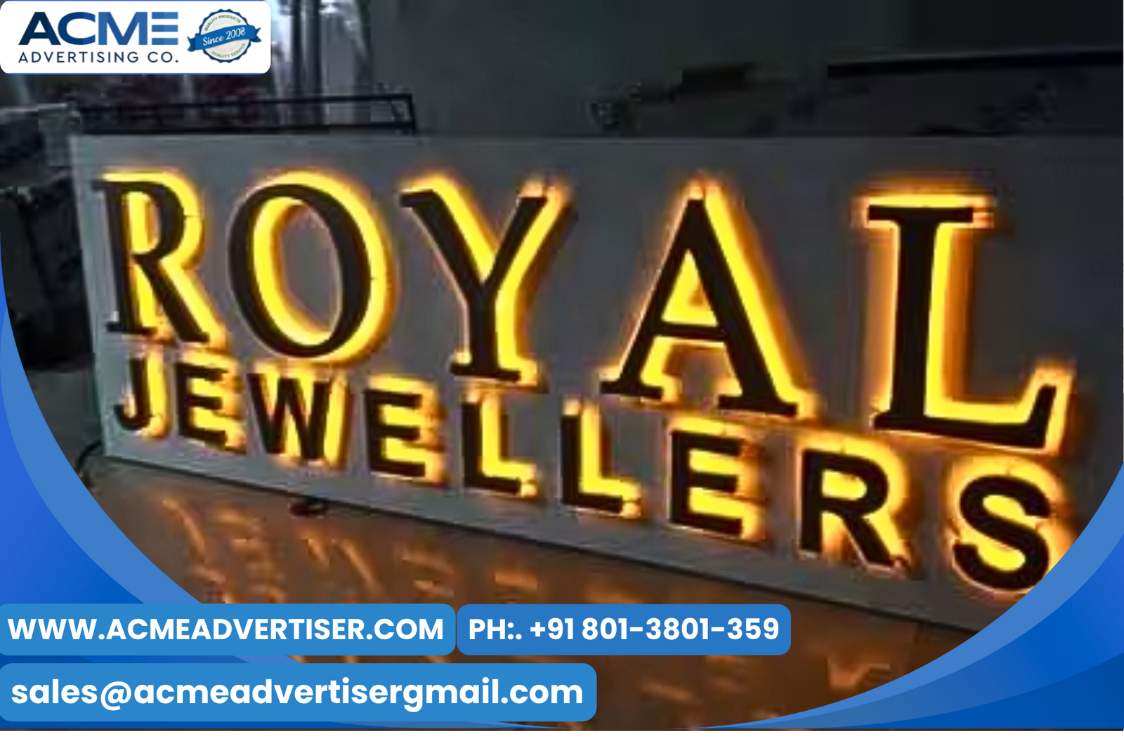 2. Back-lit (Halo-lit) LED Signage: LEDs placed behind letters to create a glowing halo effect, offering a premium and elegant appearance.