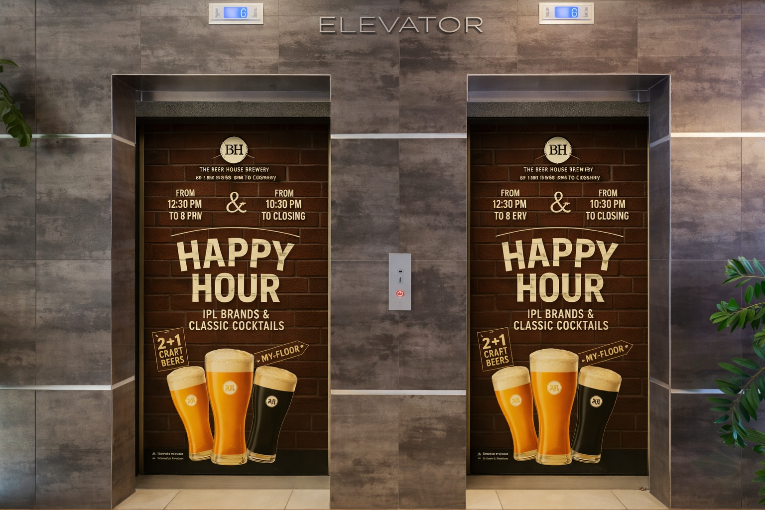 Lift Door Branding: Bold, high-impact creatives placed on lift doors for maximum visibility at entry and exit points.