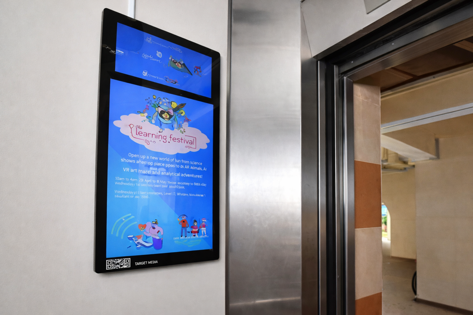 Displaying the same brand message across multiple lifts within a building or across different properties further strengthens brand recall.