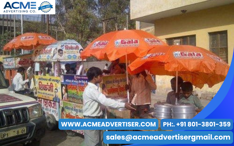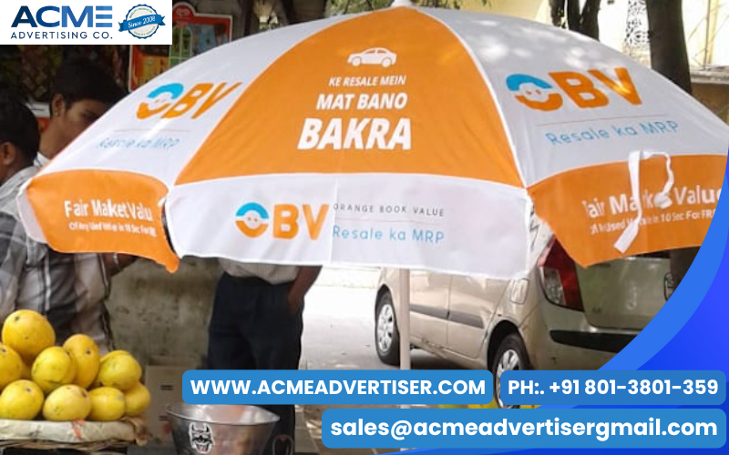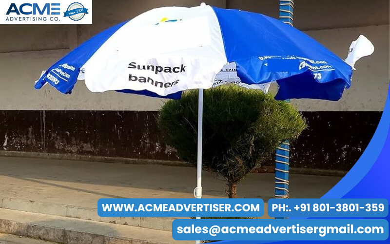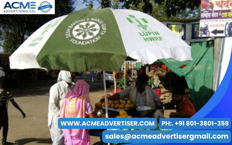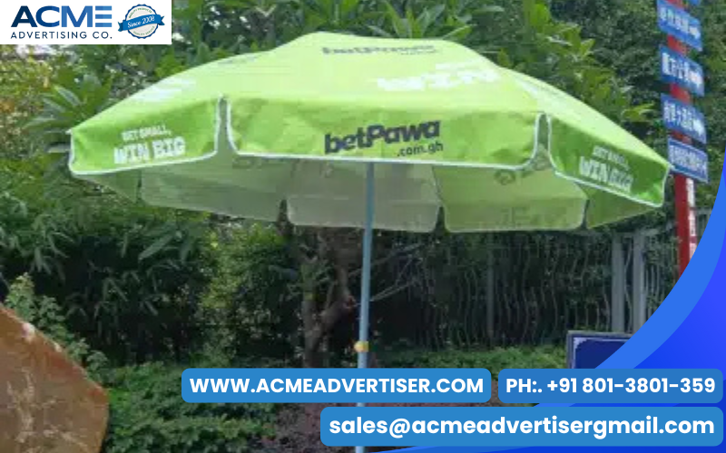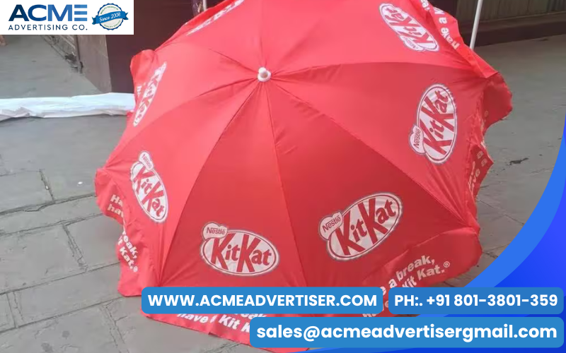 Promotional umbrella advertising uses branded umbrellas to increase brand visibility in public spaces.