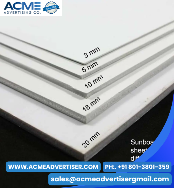 -Sunboard sheets are available in multiple thicknesses, typically 2mm, 3mm, 4mm, and 5mm, depending on project requirements.